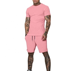 Özel erkekler yaz pamuk eşofman takımı nefes 2 parça spor spor şort & koşu egzersiz için kısa kollu tişört OEM
