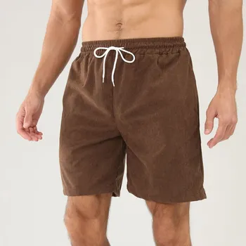 Özel erkekler kadife şort elastik bel plaj ve spor rahat pantolon İpli ve cepler ile