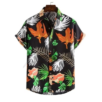 Erkek nefes hawaii gömlek toptan tropikal baskılı kısa kollu düğme-aşağı çevirmek yaka ile rahat Beachwear
